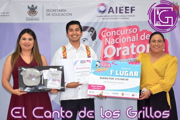 El Instituto Electoral del Estado de Querétaro (IEEQ) llevó a cabo la etapa estatal del Concurso Nacional de Oratoria 2022 Dr. Belisario Domínguez Palencia “Libres por la palabra libre”, en el que resultó ganador Leonardo Daniel Rivera García, quien recibió un premio de 10 mil pesos y representará a la entidad en la etapa nacional del certamen.