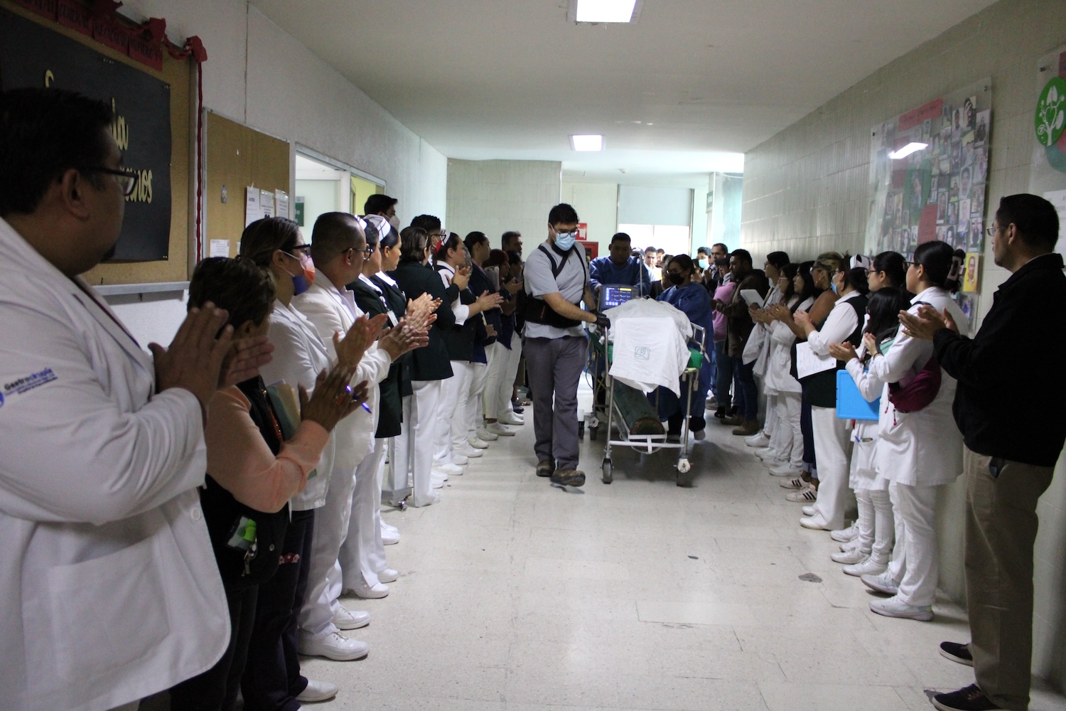 Como muestra de agradecimiento hacia su noble acción de dar vida después de la vida, personal del HGR No. 1 y familiares del donador realizaron una valla humana para despedirlo entre aplausos.