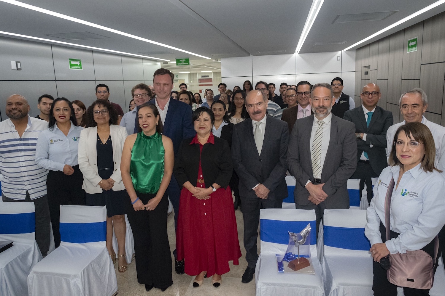 Participan en la ceremonia el jefe del Departamento de Trasplantes de Servicios de Salud del Estado de Querétaro (Seseq), Antonio Alvarado González; el director general del Hospital ángeles de Querétaro, Andriy Prokhorov; la coordinadora hospitalaria de Donación y Trasplantes del Hospital Ángeles, Nadia Lilia Arévalo Esparza, entre otras personalidades.