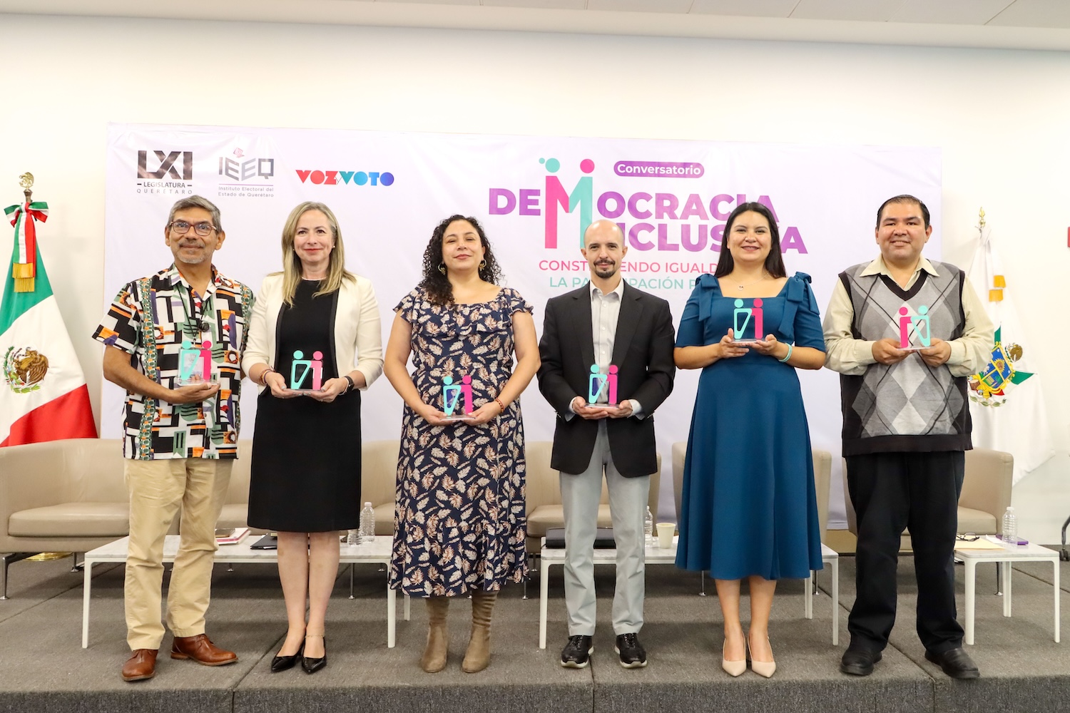 Ante más de 100 personas, el Instituto Electoral del Estado de Querétaro (IEEQ), la LXI Legislatura del Estado de Querétaro y la revista “Voz y Voto” realizaron el conversatorio “Democracia Inclusiva: Construyendo Igualdad en la Participación Política” en el Congreso del Estado.