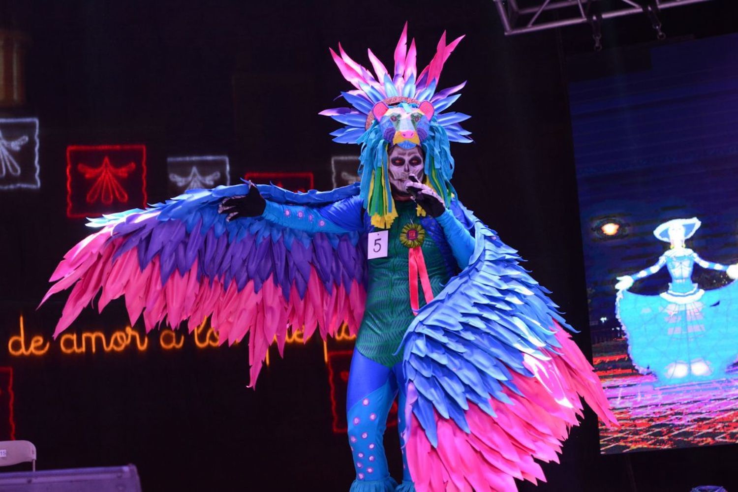 Durante el recorrido, los organizadores colocaron distintivos a las participantes con mejores disfraces y caracterizaciones, mismos que tuvieron la oportunidad de subir al escenario, uno por uno, para presentarse ante el público y explicar sus personajes.