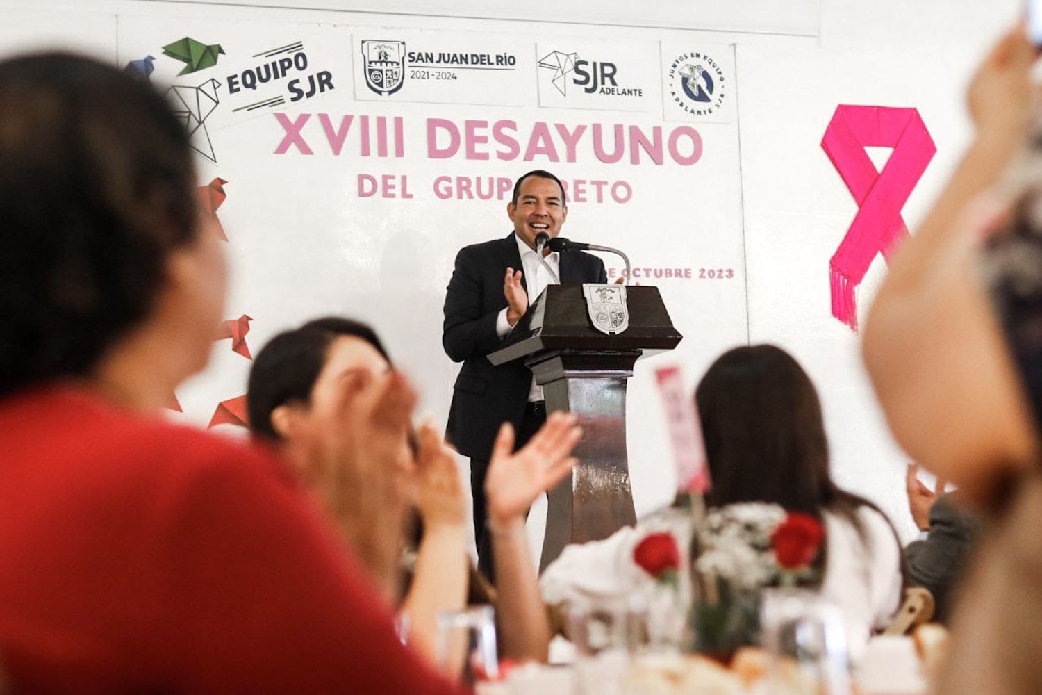 Durante el XVIII Desayuno de Grupo Reto, Roberto Cabrera recordó que en el municipio de San Juan del Río se busca la calidad de vida, y esta la da la familia, el amor y el cariño; por ello, señaló, esta administración 2021-2024 cree, ama y defiende a San Juan, del mismo modo que lo hacen los sanjuanenses, así como Grupo Reto.