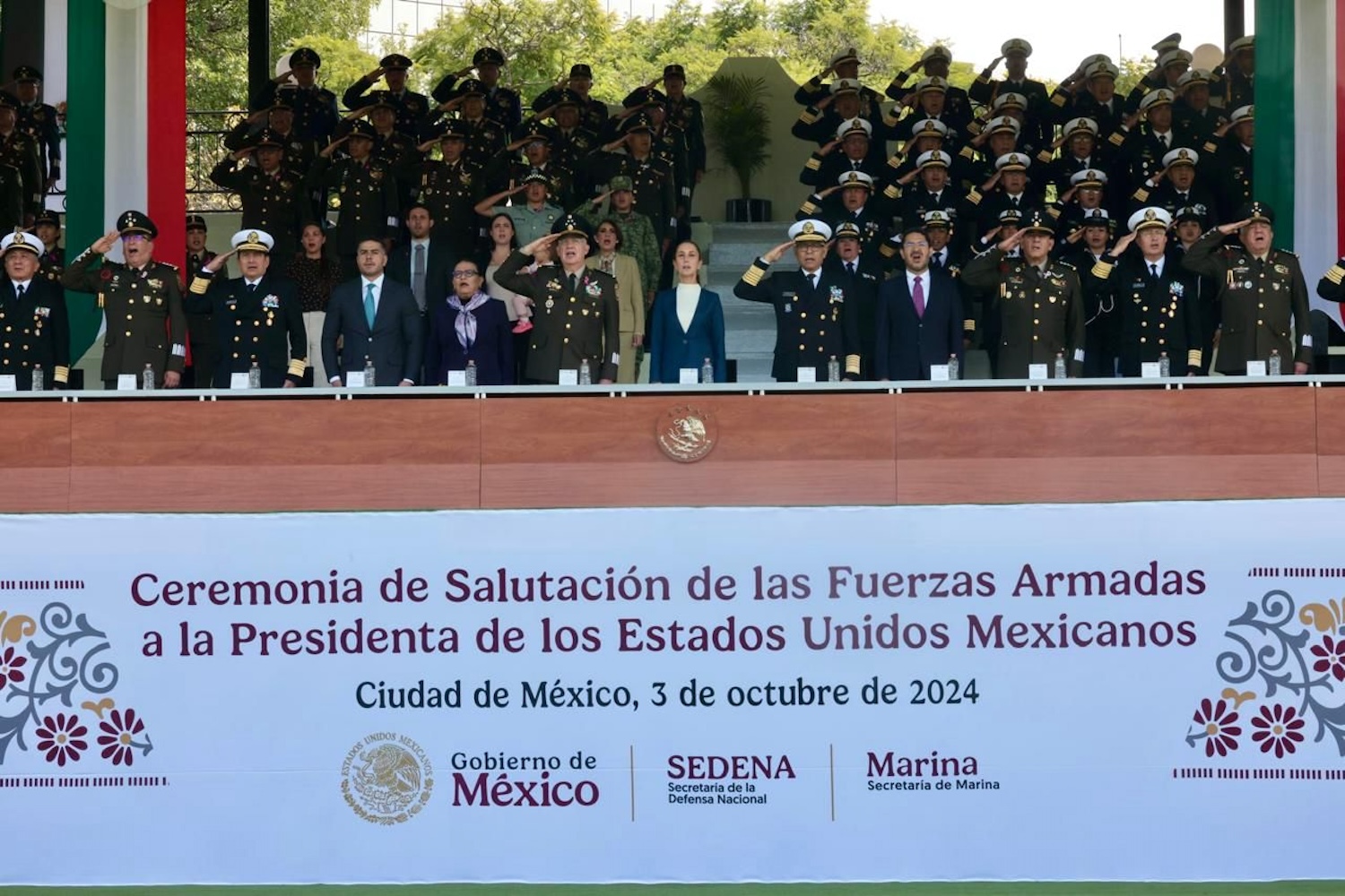 “Todas las mexicanas y mexicanos fuimos testigos de un acto que constituyó un hito en la historia patria, ya que orgullosamente presenciamos la toma de posesión de la primera mujer jefa de Estado que guiará el destino del país. Para los soldados de la República, este orgullo se enaltece porque, además, la doctora Claudia Sheinbaum Pardo es la primera mujer comandanta suprema de las Fuerzas Armadas Mexicanas, hecho inédito en nuestro devenir y motivo por el cual nos encontramos reunidos para realizar la salutación oficial militar, tradición que se realiza cuando se asume el mando de tropas”, aseveró.