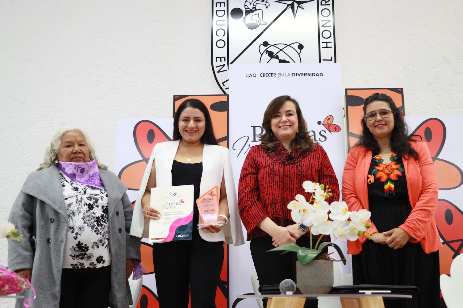 La presea fue recibida por la consejera electoral Rosa Martha Gómez Cervantes, quien presidió la Comisión de Igualdad Sustantiva de octubre de 2022 a octubre de 2024, por parte de la rectora de la UAQ, Silvia Amaya Llano, en el marco del Día Internacional de la Eliminación de la Violencia Contra la Mujer.