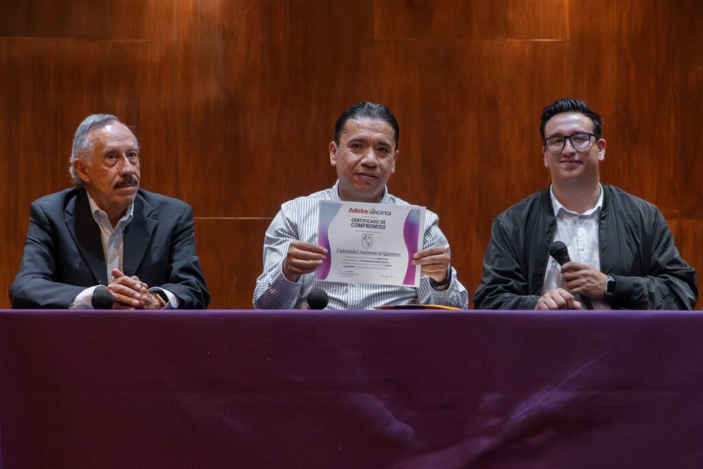 La Facultad de Artes (FA) de la Universidad Autónoma de Querétaro (UAQ) logró una importante donación de 100 licencias del software Adobe Express por parte de la empresa Digita, Definición Total S.A., equivalente a 132 mil 108 pesos, en beneficio de estudiantes con los mejores promedios de las licenciaturas en Diseño y Comunicación Visual y Artes Visuales, tanto de Centro Universitario (CU)como del campus San Juan del Río.