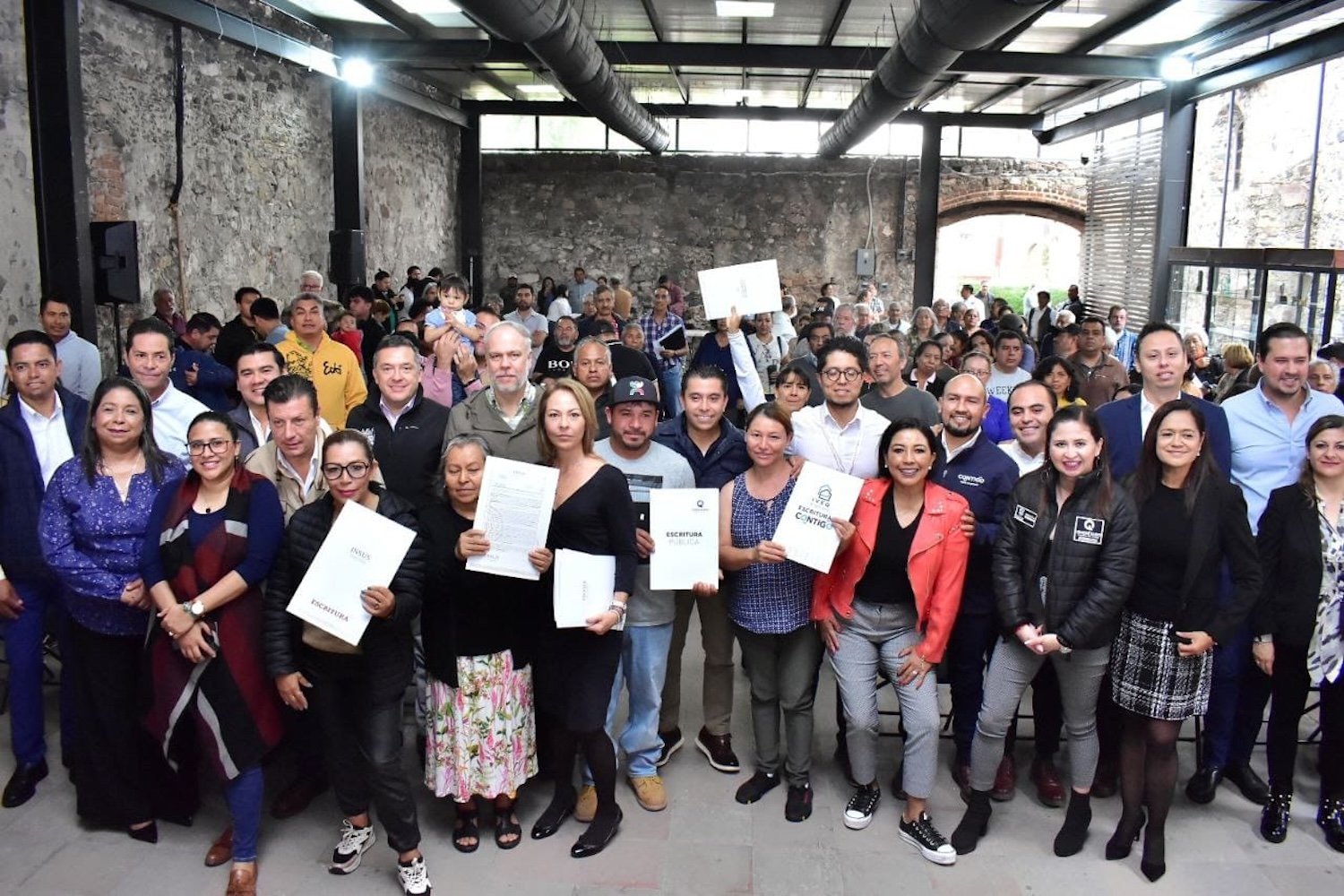 “El día de hoy es día de fiesta. Por su puesto que es un gran día para ustedes, porque ya con este documento que van a tener en sus manos, su escritura –que por tanto tiempo soñaron–, y que en algún momento iban a tener ese papel que les iba a dar certeza patrimonial, jurídica y familiar, hoy ya lo van a tener”, celebró.