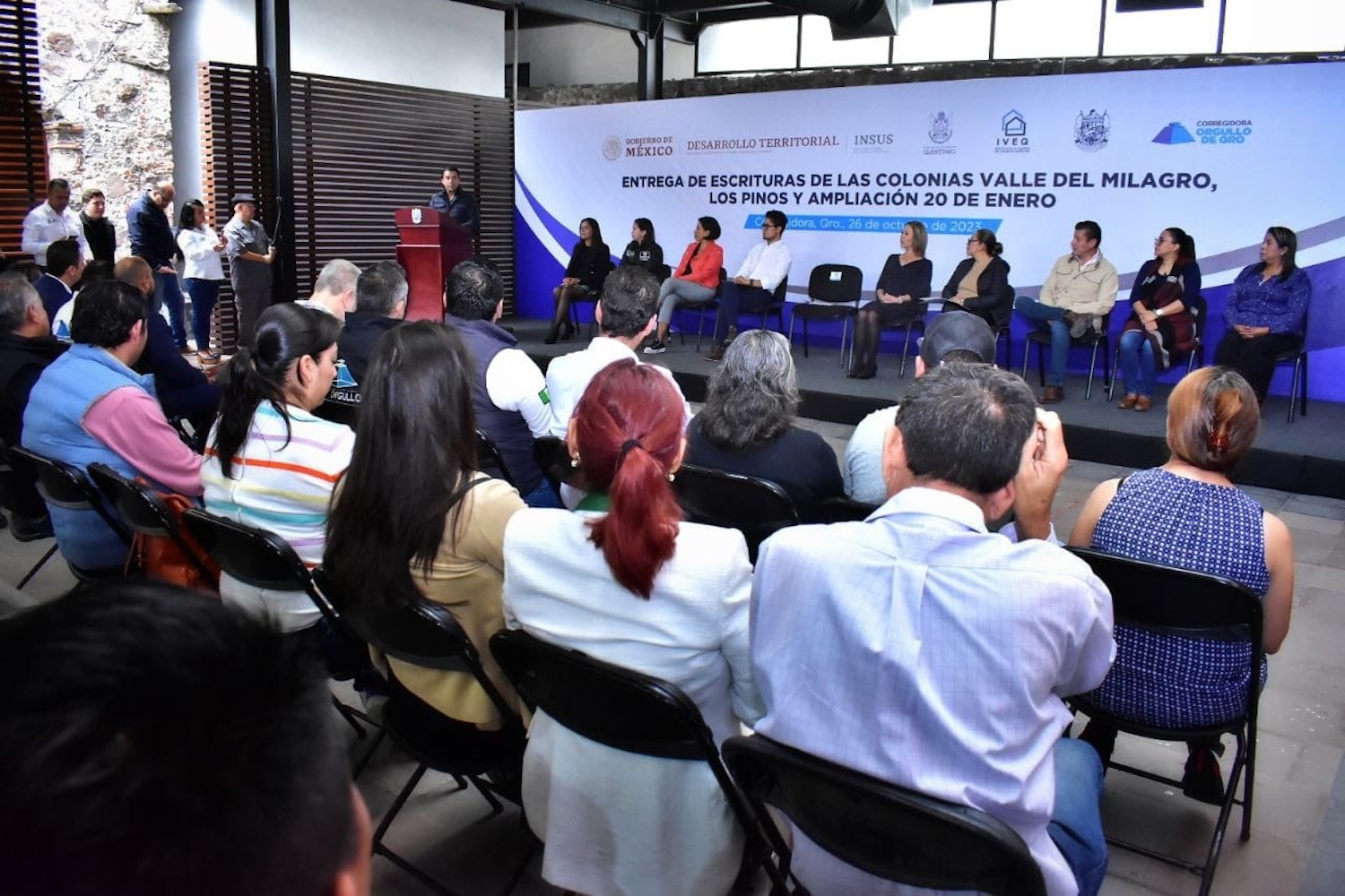 “Hoy podemos regresar a casa felices y decirles a nuestros familiares que somos dueños de un pedacito de México, ubicado en este gran municipio que es Corregidora. Es por eso que solicito a las autoridades el continuar generando programas para las personas que no cuentan con un documento que los acredite como propietarios”, expresó para concluir su discurso.