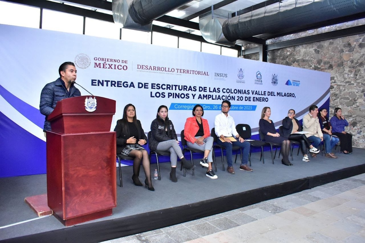En su intervención, el Diego Hoshing López Vergara, representante Regional del Insus, en los estados de Aguascalientes, Guanajuato y Querétaro, agradeció y reconoció la colaboración del alcalde Roberto Sosa Pichardo y de quienes lo acompañan en su administración para avanzar en un rezago importante que se tenía en el tema. De igual manera resaltó la voluntad y el trabajo conjunto que se ha llevado a cabo con las instancias del gobierno estatal: el IVEQ y la Sedesoq.