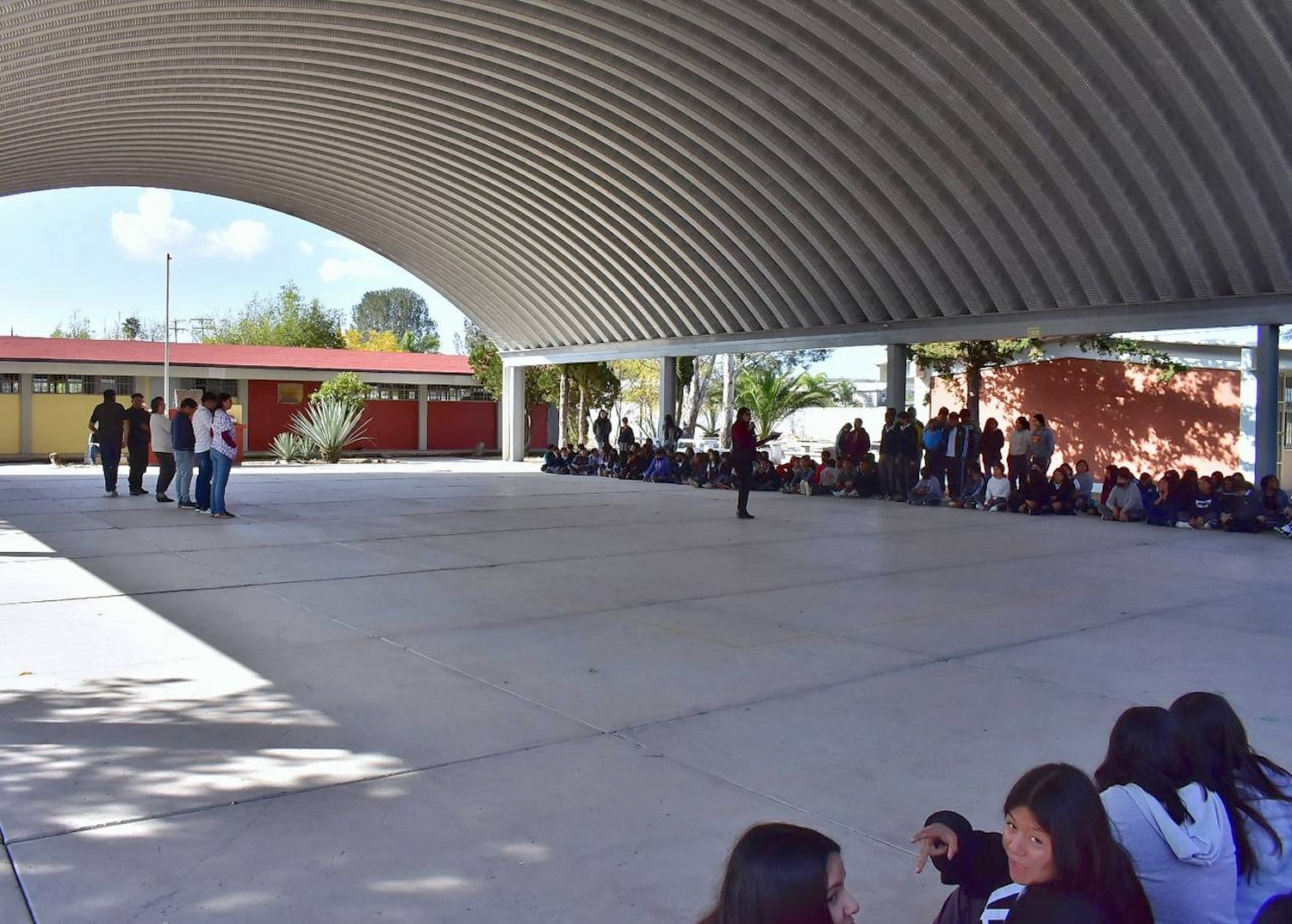 Lo anterior, después de la charla que tuvo con los niños y adolescentes de la Escuela Secundaria Técnica número 34 Emiliano Zapata, en San Rafael.
