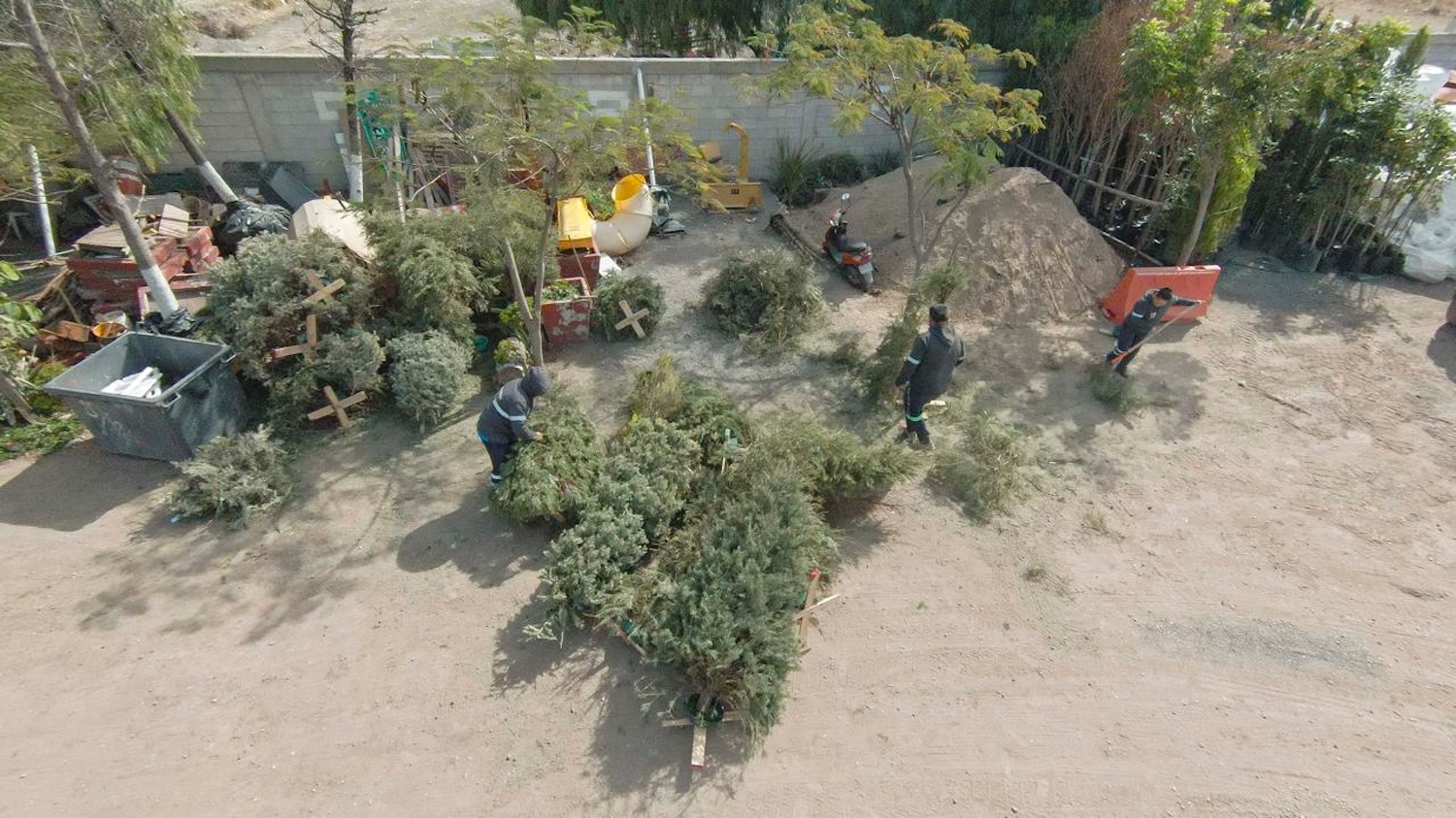 Cabe mencionar que los árboles recolectados fueron almacenados en el Vivero Municipal, donde fueron triturados para producir mosh o viruta. Este material se utiliza para hacer composta orgánica y para decorar jardineras, como se hizo con los panteones durante la festividad de Día de Muertos y con el nacimiento monumental en el Jardín Principal de El Pueblito durante las pasadas fiestas decembrinas.