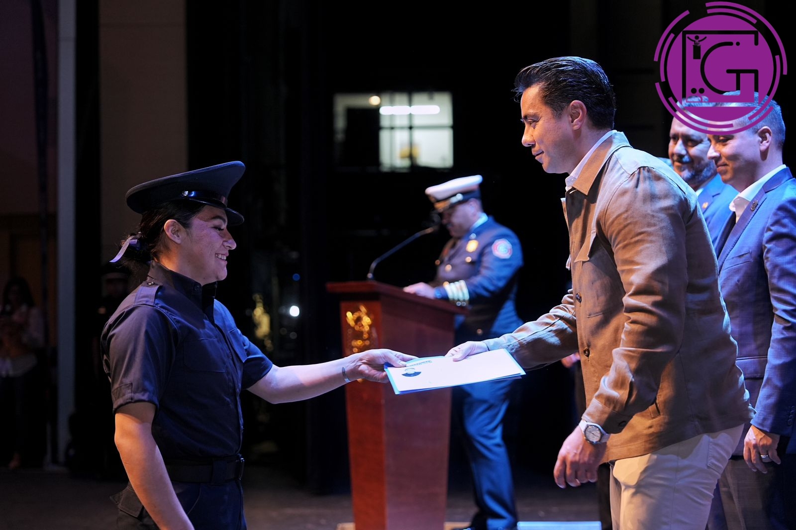 Durante la ceremonia, se entregó un reconocimiento a los nuevos integrantes del cuerpo de bomberos, así como el tradicional bautizo con manguera de agua, para aquellos que representan la vocación de servicio y el compromiso con la protección de la vida.