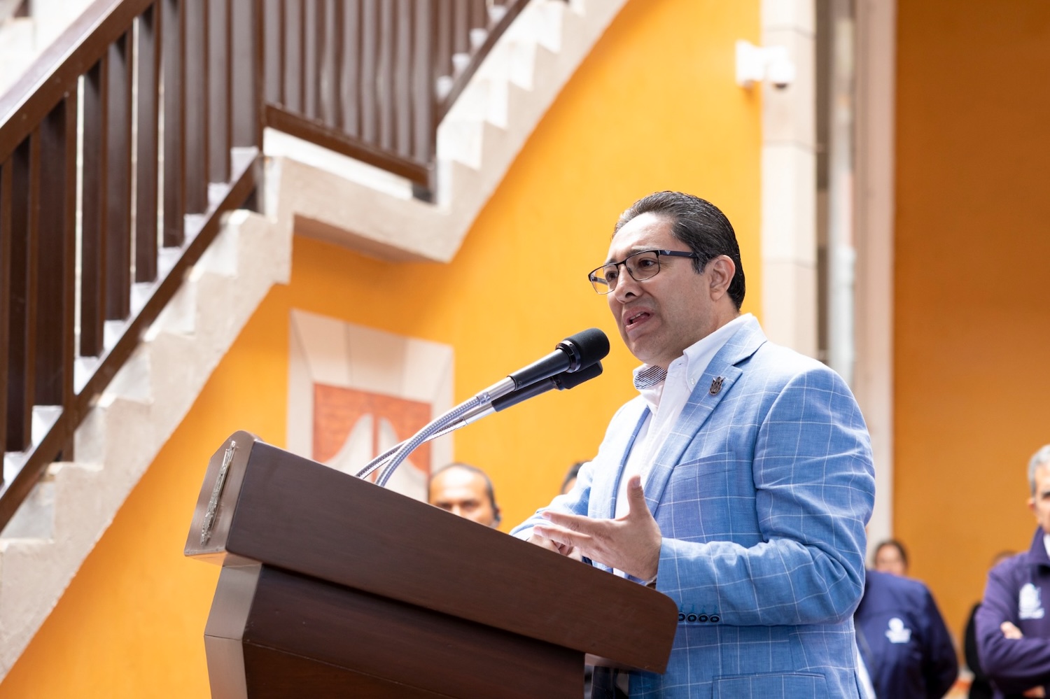La ceremonia se desarrolló en el patio principal de la presidencia municipal de Pedro Escobedo, donde el funcionario estatal resaltó la sinergia de las autoridades escobedenses con Querétaro, misma que abona, dijo, con acciones como la presentación del 100 por ciento de sus declaraciones patrimoniales para que el estado se ubique en el primer lugar a nivel nacional en este rubro.