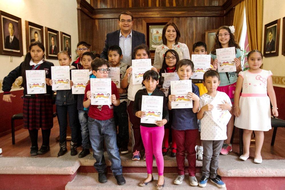 El presidente municipal, Guillermo Vega Guerrero, y su esposa Male Ruiz Pérez, presidenta del Sistema Municipal DIF, reconocieron a los 331 participantes del Concurso “Mi Corazón Mexicano”, en el que los alumnos de 8 a 12 años, expresaron su orgullo y amor por México a través de un dibujo o una carta.