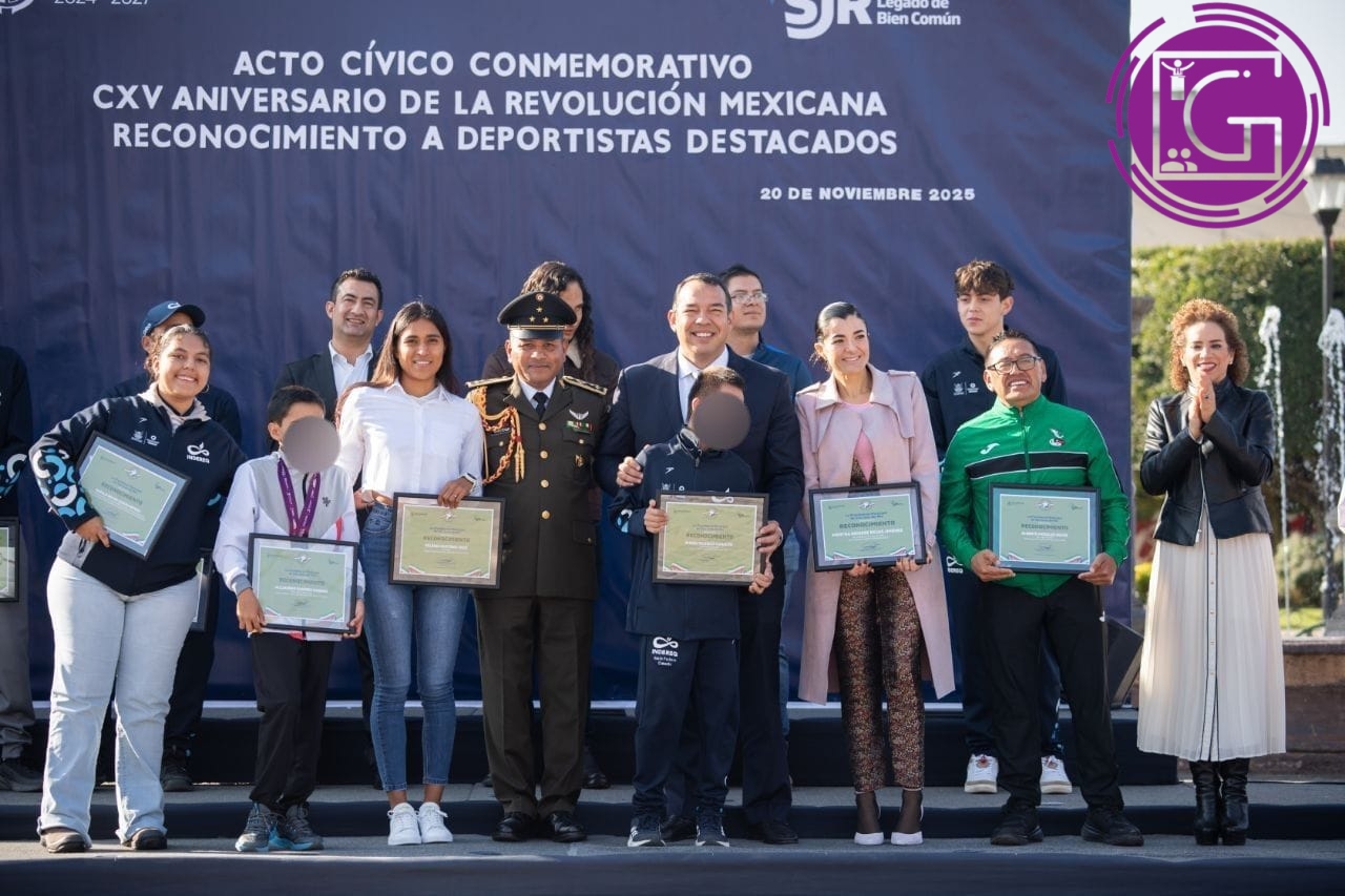 Al encabezar el Acto Cívico Conmemorativo por el 115º Aniversario del Inicio de la Revolución Mexicana, realizado en la Plaza Independencia, en el Centro Histórico del municipio de San Juan del Río, el presidente municipal sanjuanense, Roberto Cabrera Valencia, entregó reconocimientos a deportistas destacados en diferentes disciplinas.