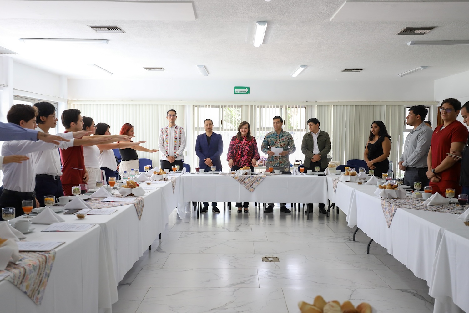 La rectora de la Universidad Autónoma de Querétaro (UAQ), Silvia Amaya Llano y el secretario particular de la Rectoría, Iván Omar Nieto Román se reunieron con diversas representaciones estudiantiles en el marco de la toma de protesta de los nuevos presidentes de sociedades de alumnos ante la Federación de Estudiantes Universitarios de Querétaro (FEUQ), encabezada por Ari Pérez Rubio.