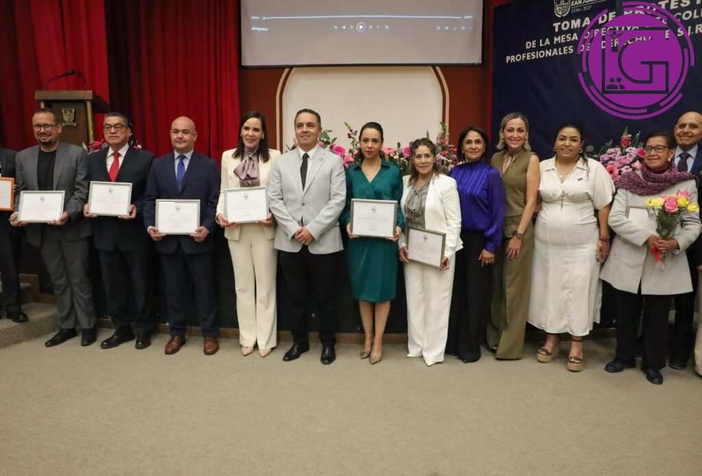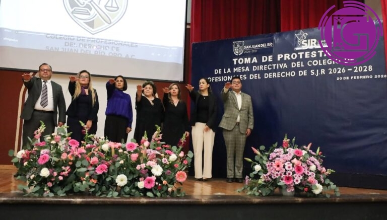 Debido a su compromiso, entrega, profesionalismo y ética, los abogados de San Juan del Río son reconocidos por la sociedad, afirmaron el secretario de Gobierno estatal, Éric Gudiño Torres y, en representación del presidente municipal de San Juan del Río, Roberto Cabrera Valencia, la secretaria de Desarrollo Social, Ana Eugenia Patiño Correa, durante la toma de protesta de la Mesa Directiva del Colegio de Profesionales del Derecho de San Juan del Río para el periodo 2026-2028.