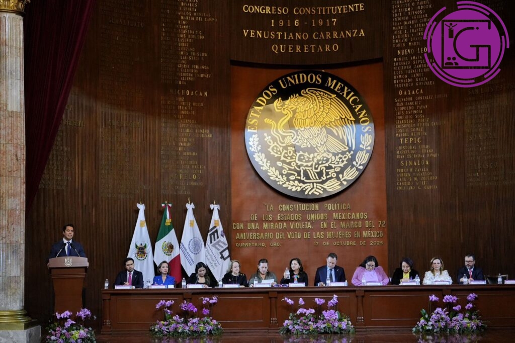 El presidente municipal de Querétaro, Felifer Macías, acompañó al gobernador del estado, Mauricio Kuri González, y a la magistrada presidenta del Tribunal Electoral del Poder Judicial de la Federación, Mónica Aralí Soto Fregoso, en el Conservatorio “La Constitución Política de los Estados Unidos Mexicanos con una Mirada Violeta”, realizado en el Teatro de la República con motivo del 72º aniversario del voto de las mujeres en México.