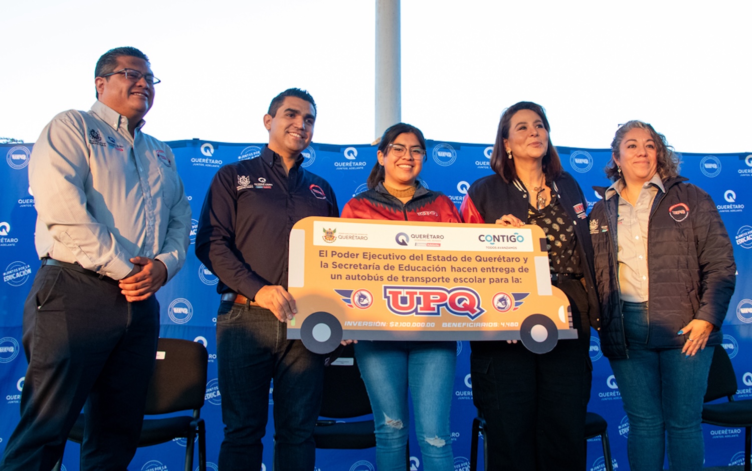 Con el propósito de fortalecer el transporte estudiantil, la Universidad Politécnica de Querétaro (UPQ) renovó un autobús institucional que pertenece a la flota de nueve camiones que dan servicio en siete rutas, con lo que se refrenda el compromiso de la institución en el proceso de aprendizaje de los estudiantes, puntualizó el rector, Carlos Contreras.