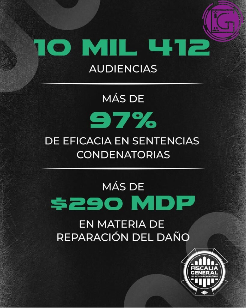 La Fiscalía General del Estado de Querétaro informa que, durante el año 2025, el trabajo ministerial registró resultados sólidos en la judicialización de carpetas de investigación, reflejando altos niveles de eficacia en sentencias, vinculaciones a proceso y legalidad en las detenciones.