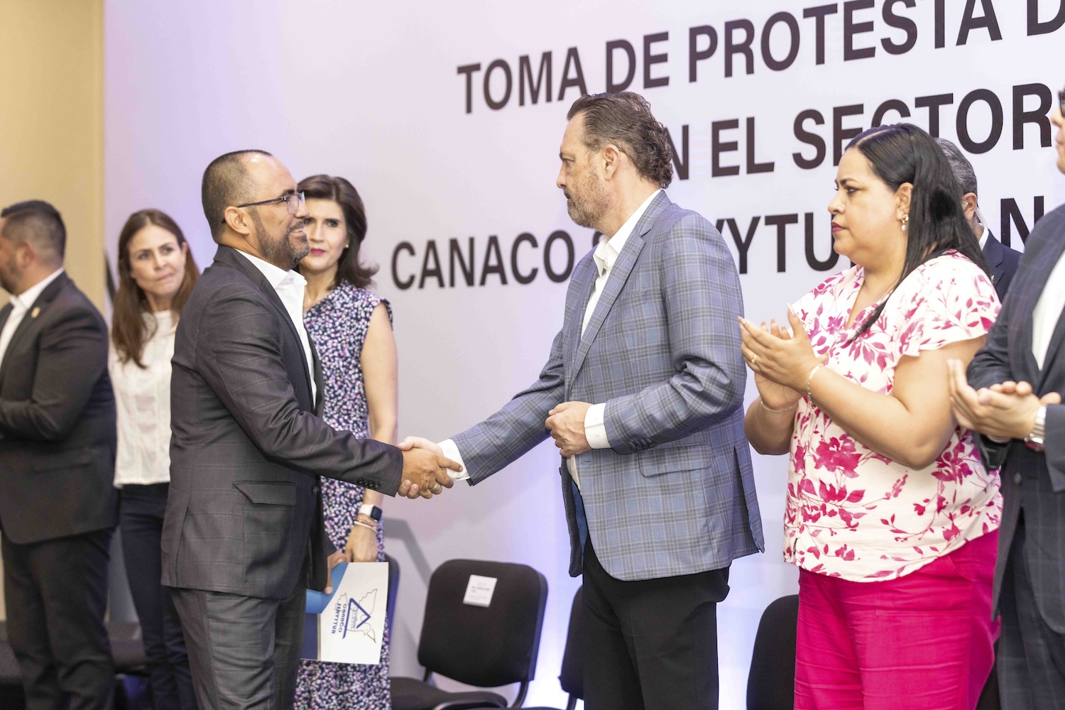 Los integrantes del Consejo de la Cámara Nacional de Comercio, Servicios y Turismo (Canaco Servytur), delegación San Juan del Río, rindieron protesta para el periodo 2024-2025, en una ceremonia en la que también se realizó un reconocimiento póstumo al expresidente de este gremio empresarial, Eduardo Prado Alcántara.