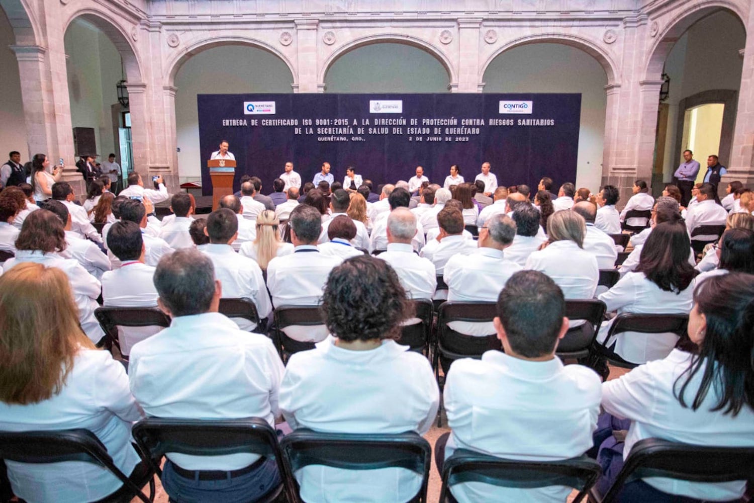“Este Certificado de Gestión de Calidad con el alcance en prestación de servicios para la protección contra riesgos sanitarios a la población, enaltece al estado de Querétaro. También reconozco el trabajo y compromiso del gobernador del estado, Mauricio Kuri, gracias por impulsar acciones que nos obligan a caminar hacia el siguiente nivel, en pro de la salud y el bienestar de la población queretana”, enfatizó.