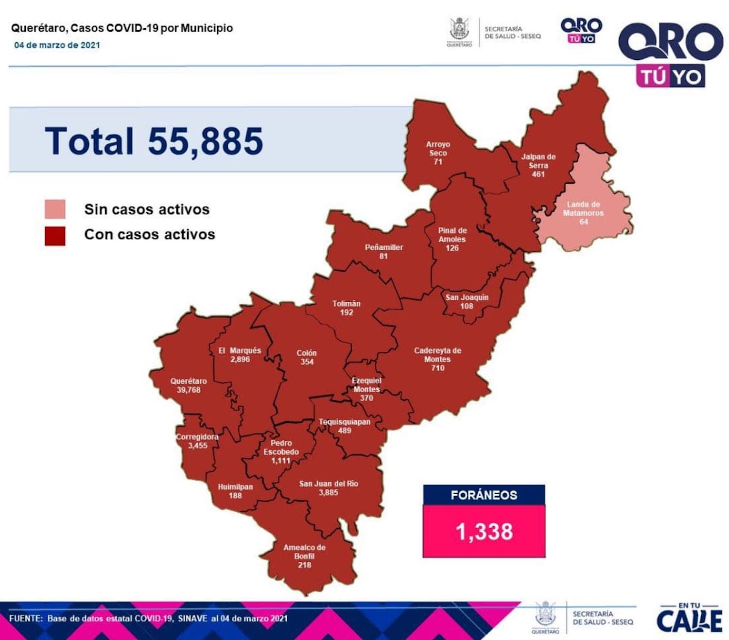 En la entidad se tiene un registro acumulado de 55 mil 885 casos de COVID-19; 51% son mujeres y 49% son hombres.