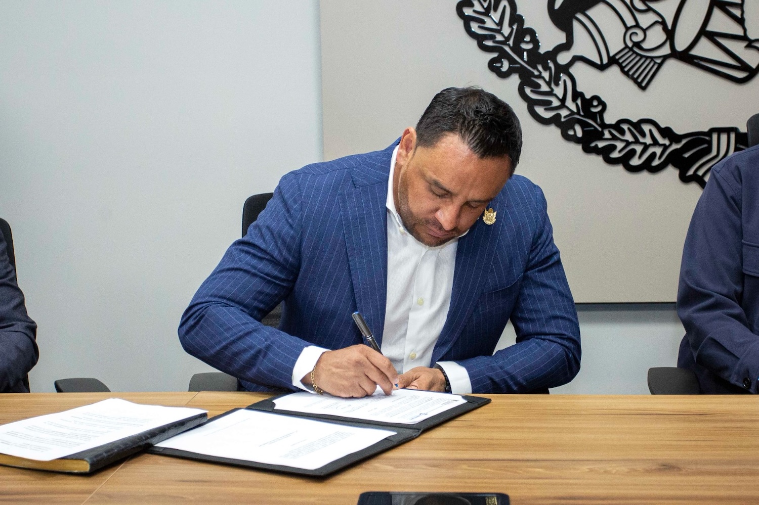El gobernador, Mauricio Kuri González, firmó como testigo de honor el convenio de colaboración entre el vocal ejecutivo de la Comisión Estatal de Agua, Luis Alberto Vega Ricoy y el secretario de Seguridad Ciudadana, Iován Elías Pérez Hernández, cuyo propósito es fortalecer la seguridad y garantizar el acceso al agua en el estado, mediante la instalación de estaciones de seguridad en las diversas oficinas de la CEA.