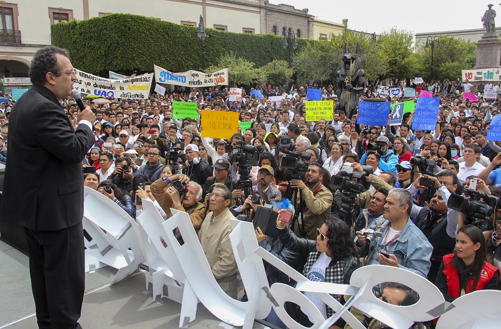 “Presupuesto suficiente para la Universidad Autónoma de Querétaro y sus funciones, y respeto a la autonomía universitaria son dos pilares fundamentales que debemos enfatizar. Señores universitarios, queretanos y todos los que aman a la Universidad: es momento de defender el futuro de la Institución. Está en nuestras manos el no mendigar, el exigir que se cumplan las cosas”, exhortó.