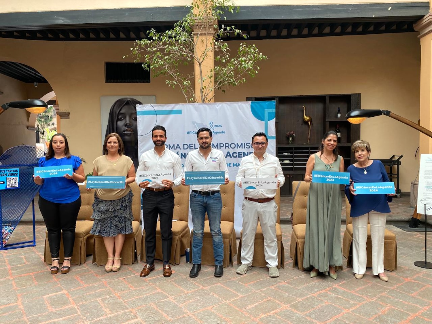 Durante esta firma de la Carta Compromiso “El Cáncer en la Agenda 2024”, estuvieron presentes como testigos: Marcela de la Vega, presidenta de la asociación AMANC; Laura Amador, representante de la asociación Antes de   Partir, en Querétaro; Leticia Luna, presidenta de la asociación Damas Azules, y Edgar Adrián Cabrera Meneses, presidente del Consejo del Banco de Tapitas.