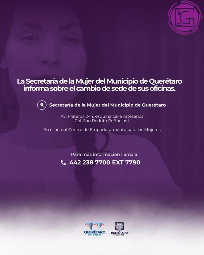 El municipio de Querétaro dio a conocer que la Secretaría de la Mujer cambió su sede al Centro de Empoderamiento de las Mujeres, con el objetivo de ofrecer servicios más accesibles, dignos y especializados a las mujeres que lo requieran.
