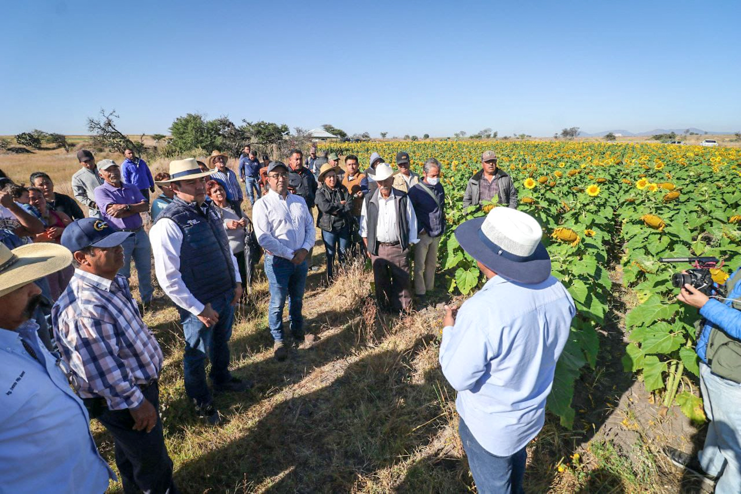 Este miércoles, Roberto Cabrera visitó una de las parcelas de la localidad de Santa Lucía, donde el ingeniero agrónomo de la Secretaría, Manuel Rojas Cruz, explicó que el girasol es un cultivo alternativo para temporales bajos, aunque también registra resultados positivos en temporales con mayor cantidad de agua.