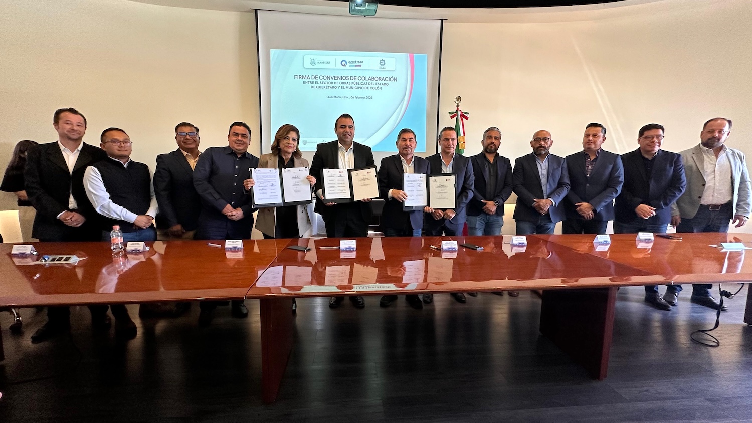 Estos convenios fueron firmados también por la coordinadora de la Comisión Estatal de Infraestructura (CEI), Sonia Carrillo Rosillo y por el director del Instituto de la Vivienda (IVEQ), Carlos Astudillo Suárez.
