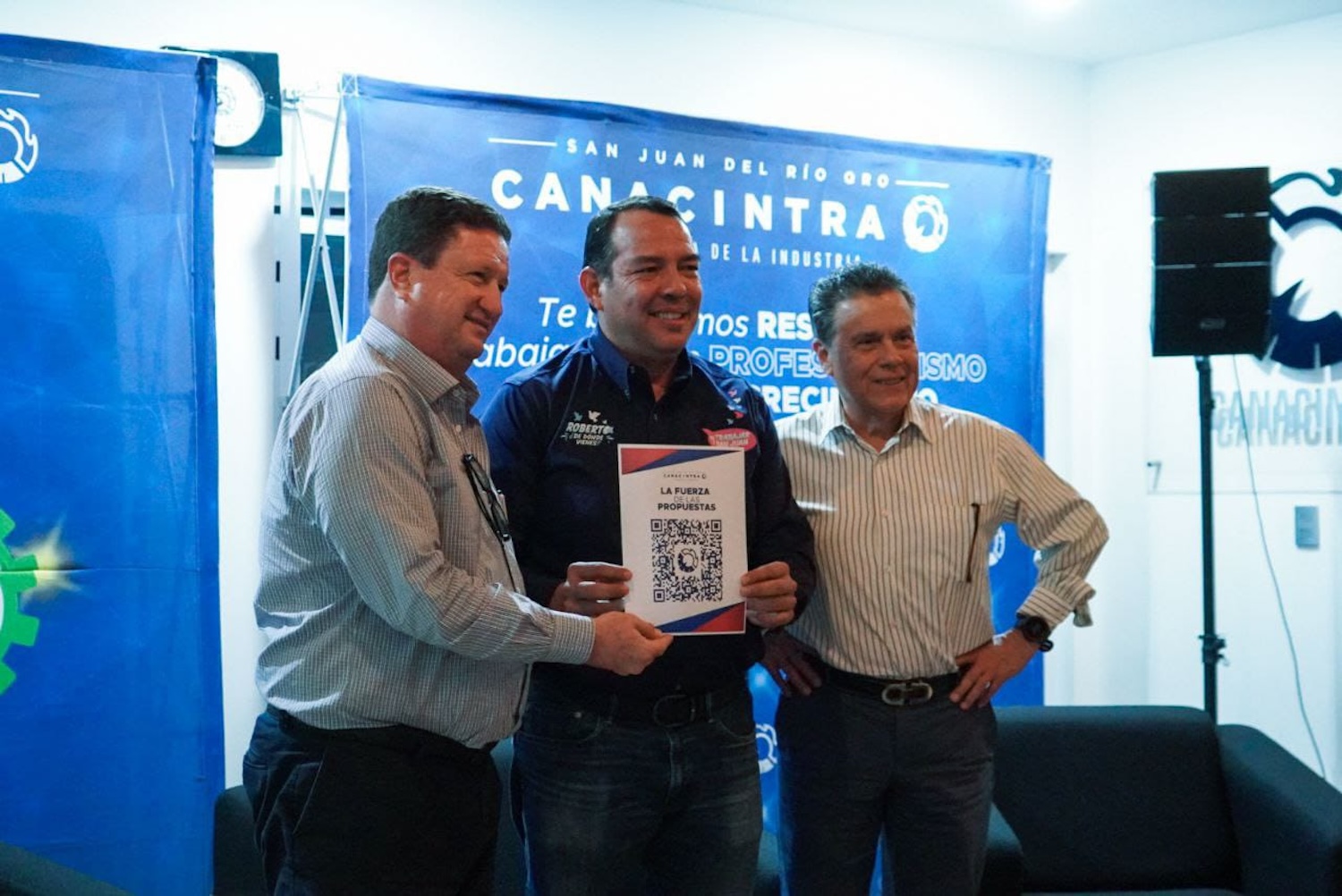 En el encuentro, Roberto Cabrera Valencia recibió las propuestas de Canacintra San Juan del Río, las cuales versan sobre temas de movilidad, seguridad, energía, obra pública y atracción de inversiones, entre otros.
