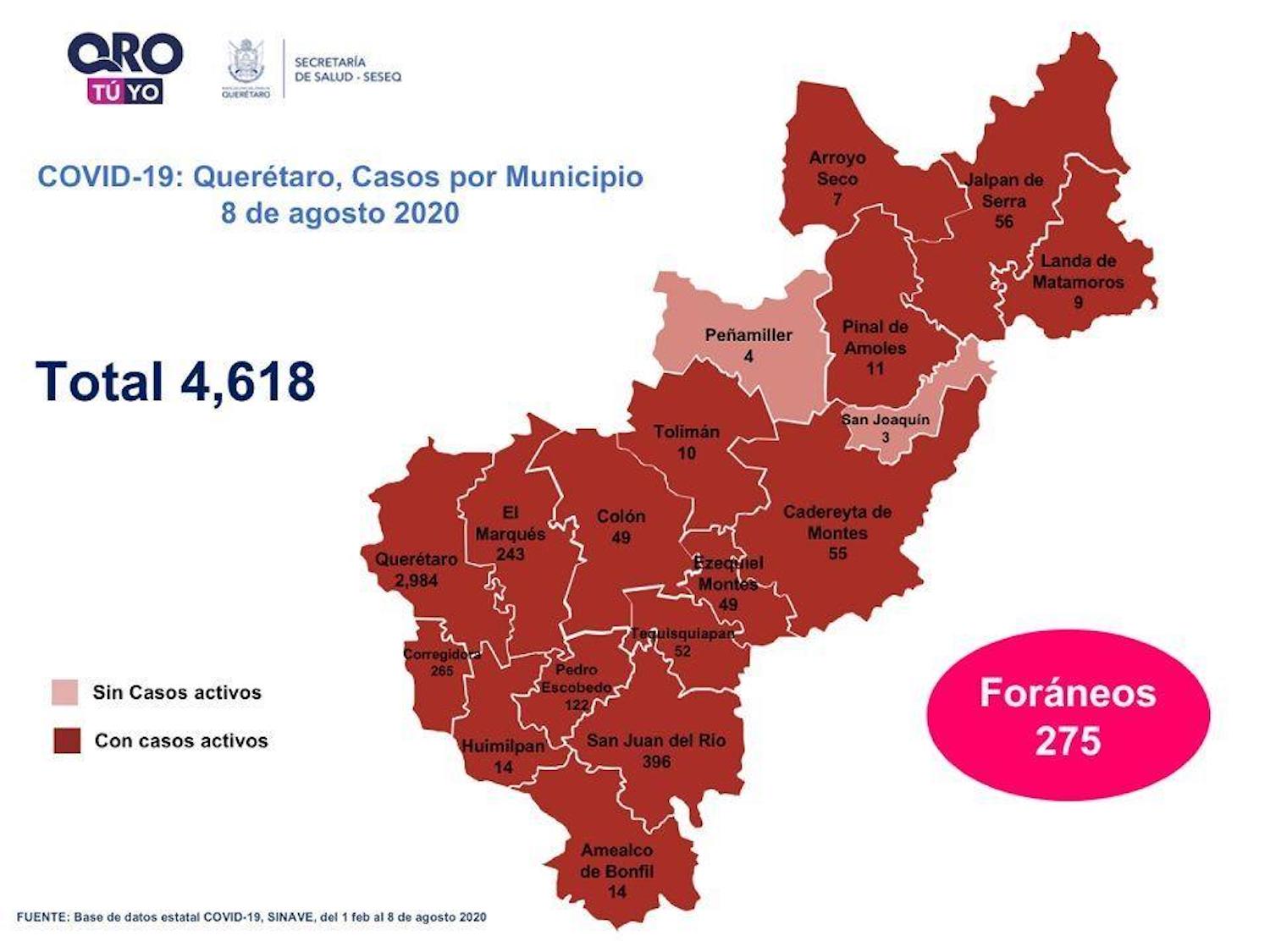 En la entidad se tiene un registro acumulado de cuatro mil 618 casos de COVID-19; 44% son mujeres y 56% son hombres.