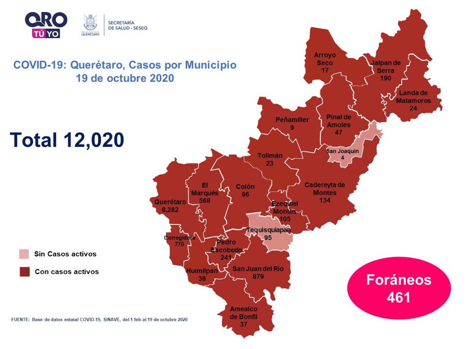En la entidad se tiene un registro acumulado de doce mil 20 casos de Covid-19; 47% son mujeres y 53% son hombres.
