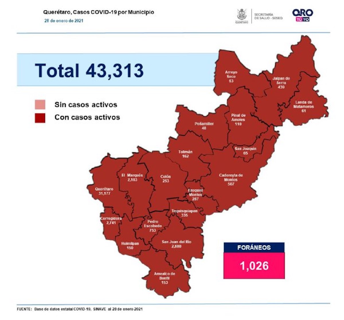 Suma Querétaro 675 contagios y 39 muertes más por #coronavirus