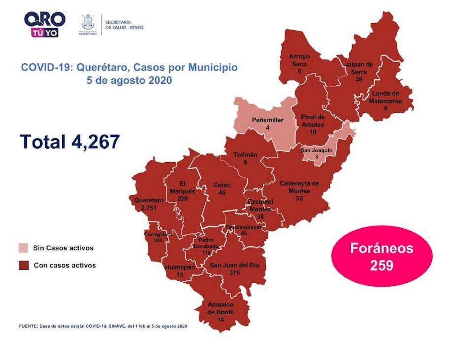 En Querétaro, un hombre de 46 años con insuficiencia renal, tres mujeres de 60, 70 y 79 y un hombre de 82 sin comorbilidades, un hombre de 85 con diabetes e hipertensión arterial y un hombre de 89 años con insuficiencia renal, que se encontraban hospitalizados, fallecieron a causa de la enfermedad COVID-19.