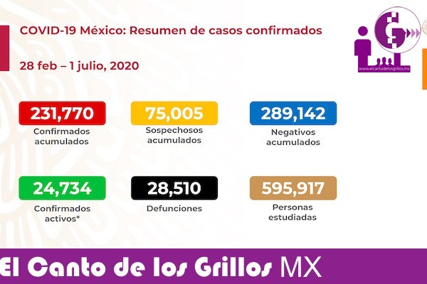 Precisó que se han confirmado 231 mil 770 casos positivos al nuevo coronavirus, 5 mil 681 más que ayer y que 24 mil 734 corresponden a la epidemia activa. Agregó que a la fecha se han recuperado 138 mil 319 pacientes de Covid-19, es decir 60% del total de personas que han contraído el virus.