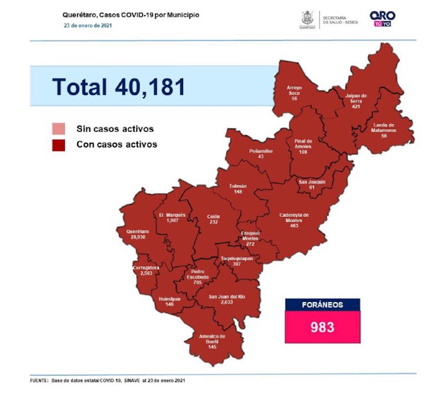 En la entidad se tiene un registro acumulado de 40 mil 181 casos de Covid-19; 50% son mujeres y 50% son hombres.