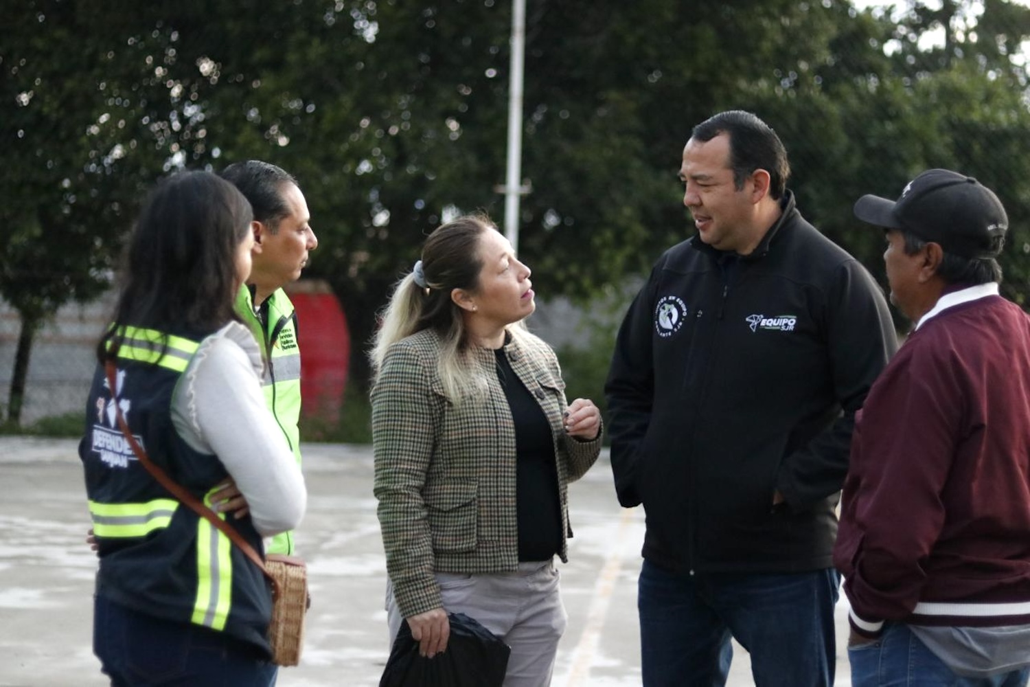 Con la finalidad de fortalecer la seguridad y la limpieza en los espacios públicos, este martes, a partir de las 6 de la mañana, el presidente municipal de San Juan del Río, Roberto Cabrera Valencia, junto con el secretario de Servicios Públicos Municipales, Ernesto Mora Rico, y el titular de la Secretaría de Participación Ciudadana, Gregorio Mondragón Mendoza, supervisaron los trabajos de aseo y mantenimiento en parques y la cancha de la colonia Vista Hermosa.