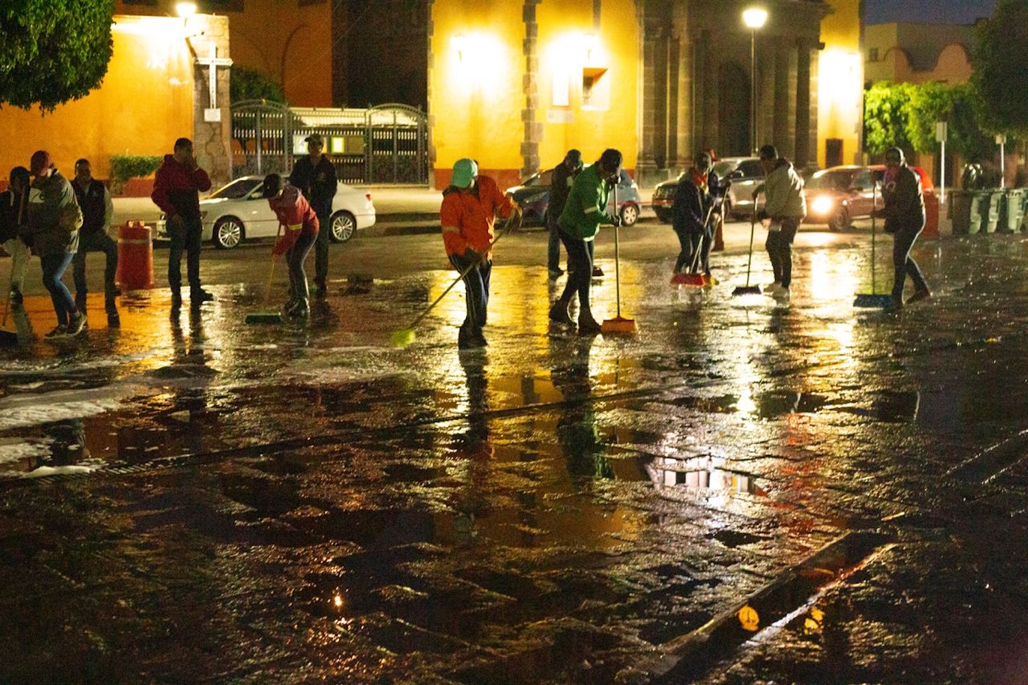 “El equipo de Servicios Públicos es un equipo que yo admiro mucho su trabajo, porque nos da un San Juan del Río bonito, un San Juan del Río limpio, y bueno, estamos dándole mantenimiento a lo que es el corazón de San Juan. (…) El Centro Histórico es un área muy bonita, de mucho disfrute, del goce de todas nuestras familias y, bueno, pedirles también que nos ayuden no tirando cosas que afecten el piso”, dijo Roberto Cabrera durante el recorrido por ambos espacios.