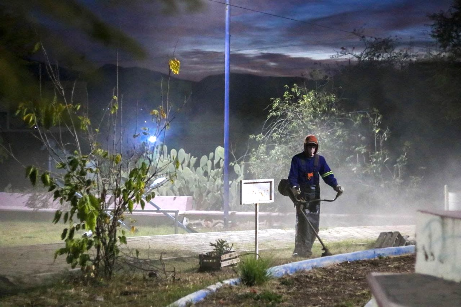 En la zona, más de 25 trabajadores de Servicios Públicos Municipales realizaron acciones de deshierbe, poda de árboles y barrido fino, recolección de basura, pinta de estructuras de cemento, borrado de grafiti, así como también el cambio de ocho lámparas que iluminarán dicho parque.