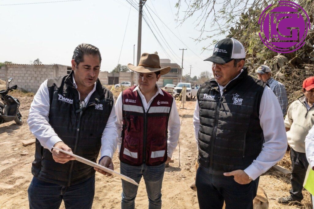 El presidente municipal de San Juan del Río, Roberto Cabrera Valencia, junto con el director de la Junta de Agua Potable y Alcantarillado Municipal de San Juan del Río (JAPAM), Toño Pérez, acompañados del titular de la Comisión Nacional del Agua (Conagua) en Querétaro, Gerardo Sinecio Ríos, realizaron un recorrido de supervisión por la obra de ampliación de la red de drenaje sanitario en la colonia Nuevo San Antonio, ubicada en las inmediaciones de la comunidad de El Carrizo.