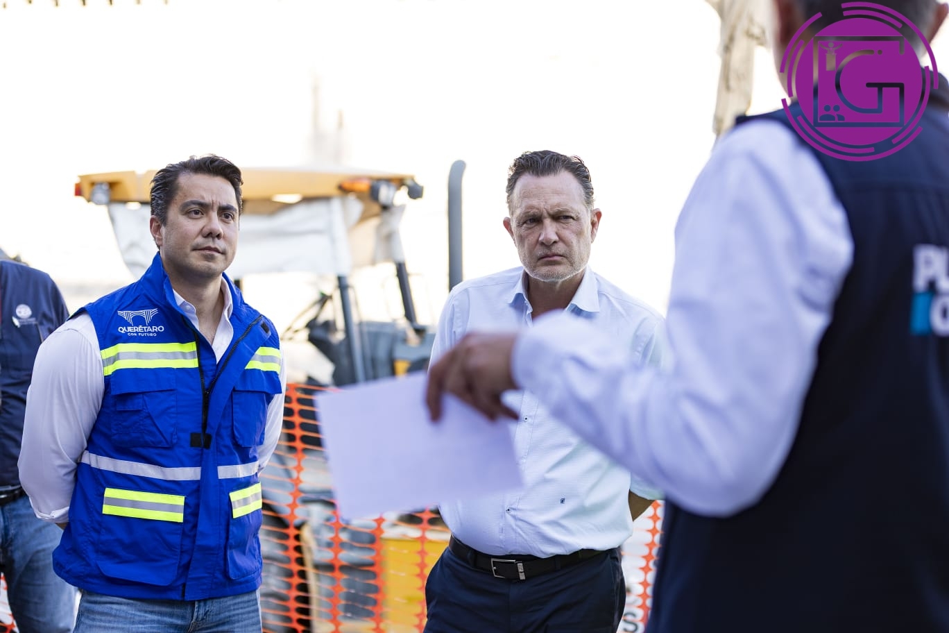 Continuando con el recorrido, la comitiva encabezada por Kuri González, supervisó el avance del proyecto de mejoramiento de infraestructura hidrosanitaria, pluvial y urbana de la calle Obreros, en la colonia Peñuelas, el cual registra un 20 por ciento de avance y se prevé concluya en el mes de junio próximo; esta intervención contempla una inversión de 49.8 millones de pesos, incluye trabajos de drenaje sanitario, red de agua potable e infraestructura pluvial, y permitirá mejorar la movilidad, la seguridad y los servicios básicos, beneficiando a más de ocho mil habitantes de la zona.