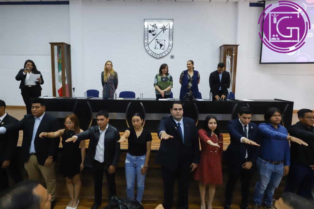 Con el firme compromiso de representar y defender los intereses de la comunidad estudiantil de la Universidad Autónoma de Querétaro (UAQ), tomó protesta el nuevo Comité Ejecutivo de la Federación de Estudiantes Universitarios de Querétaro (FEUQ). Esta nueva administración será encabezada por la alumna de Optometría de la Facultad de Medicina, Ibette Yasmin Baeza Hernández, quien es la primera mujer electa por el alumnado para este encargo.