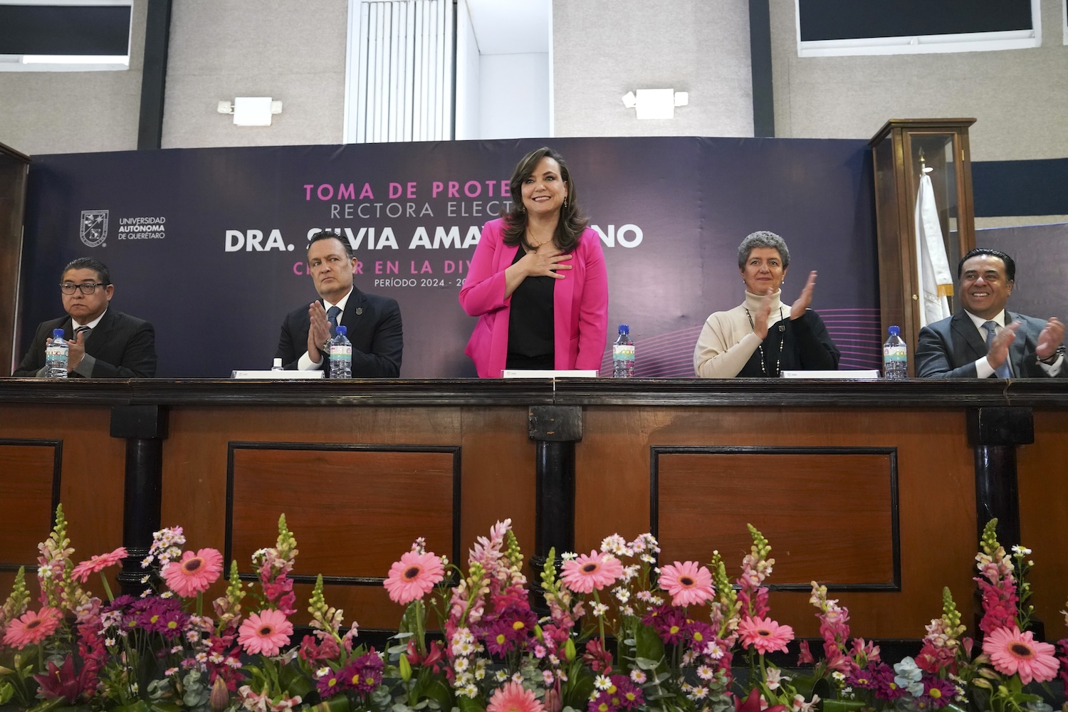 En sesión extraordinaria del H. Consejo Universitario, Silvia Amaya Llano tomó protesta como nueva rectora de la Universidad Autónoma de Querétaro (UAQ) para el período 2024-2027, acto en el cual asumió diversos compromisos con todos los sectores de la institución y aseveró que su visión estará enfocada en lograr que la UAQ sea una institución sensible, con sentido humano, calidad académica y mayor prestigio.