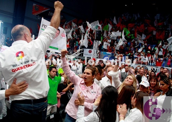 En el Auditorio General José María Arteaga, Pancho Pérez, candidato a la presidencia municipal de Querétaro por la coalición “Por un Querétaro Seguro” (PRI-PVEM), entre porras y muestras de cariño de sus simpatizantes, agradeció por todo el apoyo demostrado durante los 42 días que se han trabajado para recuperar Querétaro.