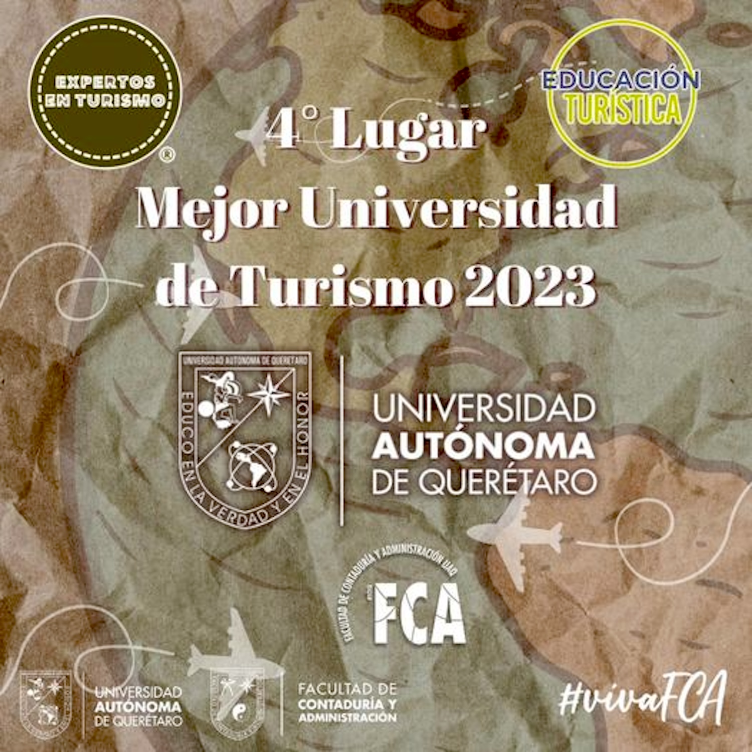 La Licenciatura en Negocios Turísticos, que oferta la Facultad de Contaduría y Administración (FCA) de la Universidad Autónoma de Querétaro (UAQ), obtuvo el cuarto lugar durante la ceremonia de reconocimientos Premios al Turismo 2023, impulsado por la empresa Entorno y Educación Turística, en la categoría Mejor Universidad de Turismo.