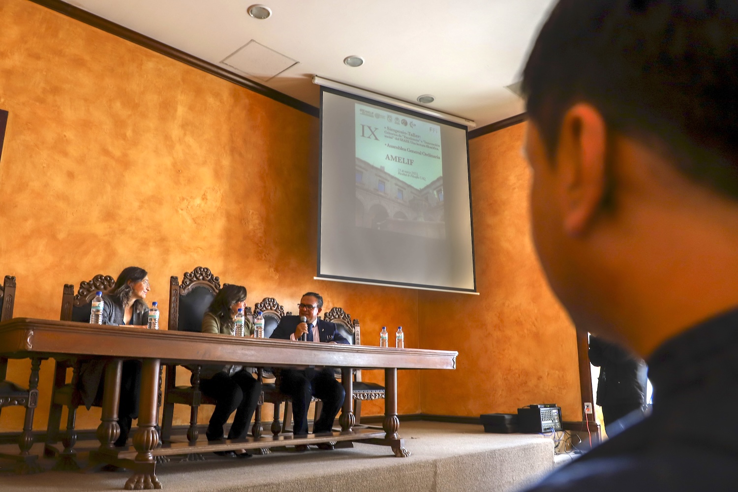 La Facultad de Filosofía (FFi) de la Universidad Autónoma de Querétaro (UAQ) fue sede de la Asamblea General Ordinaria de la Asociación Mexicana de Licenciaturas en Filosofía (Amelif). La recepción estuvo encabezada por la rectora Silvia Amaya Llano; el director de la FFi, José Salvador Arellano Rodríguez, y la presidenta de la Amelif, Heidi Alicia Rivas Lara.