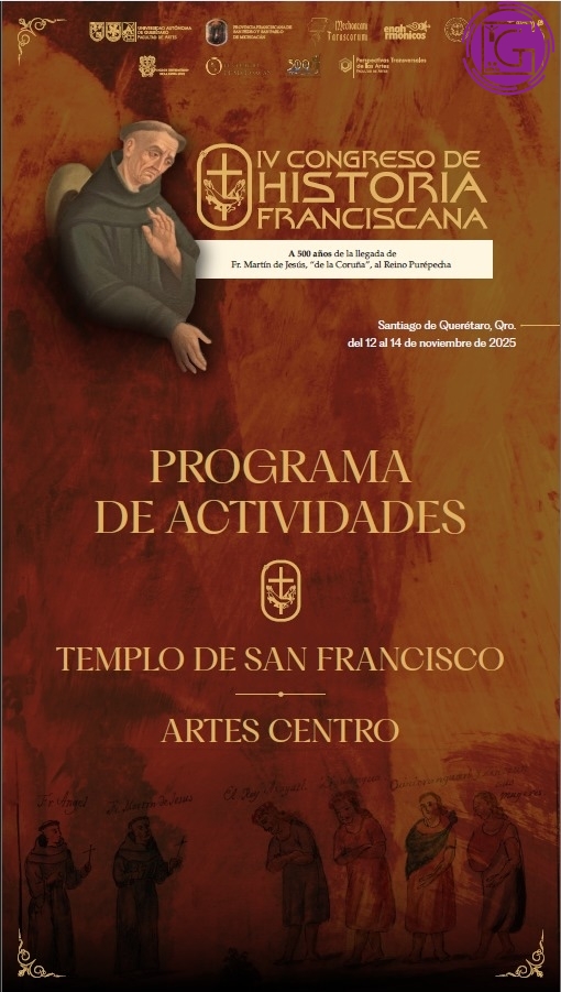 Del 12 al 14 de noviembre, el Auditorio Esperanza Cabrera de la Facultad de Artes (FA) de la Universidad Autónoma de Querétaro (UAQ) –en coordinación con el Templo de San Francisco– será sede del cuarto Congreso de Historia Franciscana. El congreso forma parte de la conmemoración por los 500 años de la llegada de Martín de Jesús de la Coruña al Reino Purépecha.
